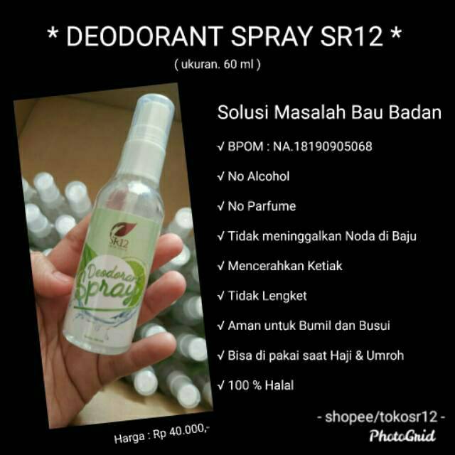 Produk DEODORANT SPRAY SR12 PENGHILANG BAU BADAN KETIAK KERINGAT KAKI HELM ASLI ORIGINAL 100% ini harganya adalah Rp. 25.000,00 dan sekarang ini sedang Potongan harga , Produk ini sendiri saat saya tulis Artikel ini telah disaksikan sejumlah 71 kali dan telah diminati sekitar 7 kali.